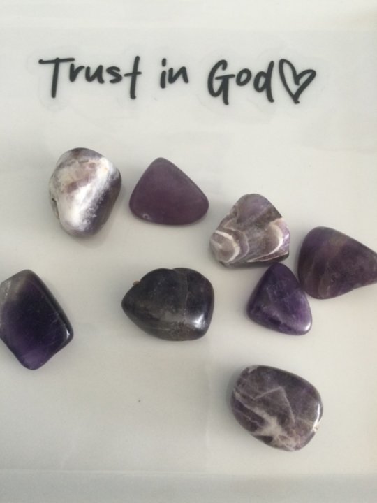 Ametysten kaldes også for trosstenen, og er også brugt i den kristne tro. Den bliver bl.a. kaldet bisperingen, da nogle katolske præster bærer en ring med Ametyst.